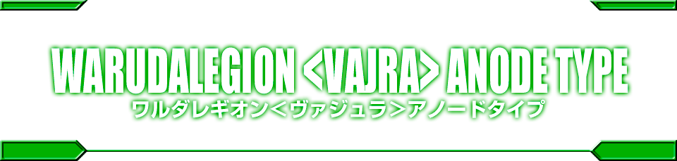 凄まじいパワー攻撃を特徴とする第二のワルダレギオン<ヴァジュラ>のアノード型が出現。ワルダレギオンもワルダースーツ同様に同型で外装色が明暗の機体同士は陰極(カソード)と陽極(アノード)の属性を備えた対関係を持つ。