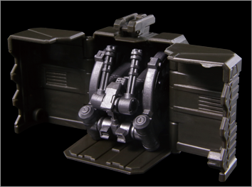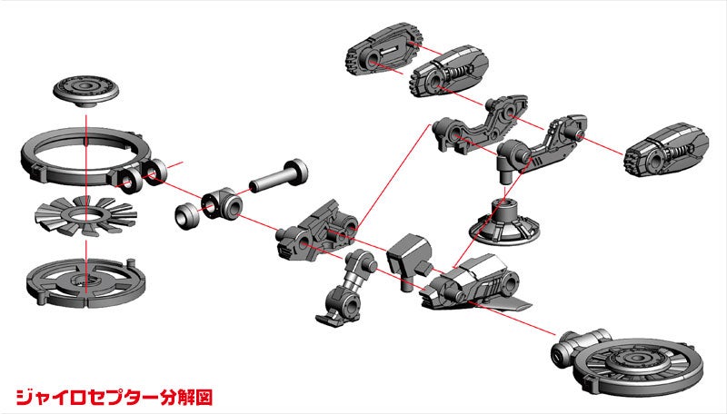 <ジャイロセプター>はパワードシステム搭載型パワードスーツの空中移動や空中戦闘機動を 優位に遂行可能とする大気圏内用の飛行型拡張ユニットだ。パワードスーツ単独でも胴体底部ニトロブースターと左右前腕部外側下部の スラスターの併用で30M程度の垂直上昇や降下が可能だがこのユニットの装着により巡航飛行やホバリング等あらゆる空中機動が長時間に亘り可能となるのだ。 小型FZジェネレーター搭載の独立完結型機能モジュールで構成された機体は隊員乗用機や無人型ドローン機等への組み換え運用が可能。