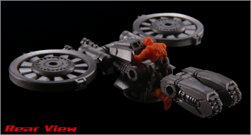 左右のジャイロタイプのフライングプレーンモジュール、機体下部のターボブースター、 リア部のサブブースター2基を備えた飛行系ユニットの集合体とも言える機体はモジュール組み換え運用機とは思えない程高性能な一人乗りの小型戦闘機として完結している。 フライングプレーンモジュールを外した状態でも高速ホバーバイクとして使用可能だ。標準武装は前部に備えた破壊力抜群のガトリングパルス砲2門。