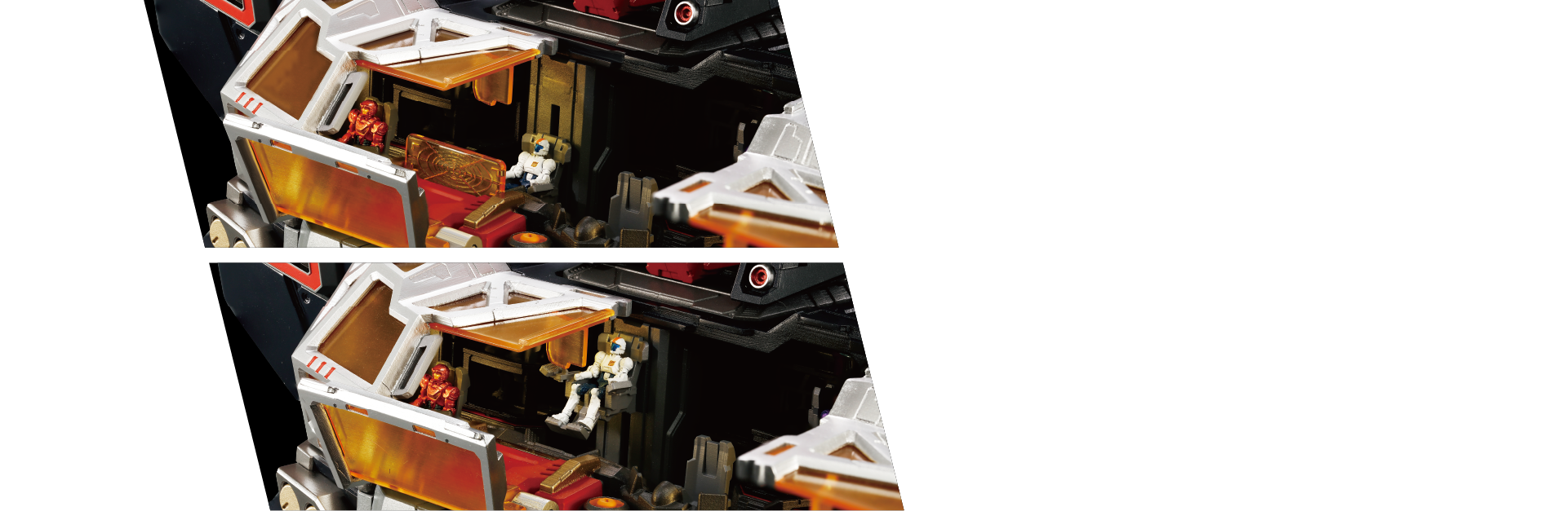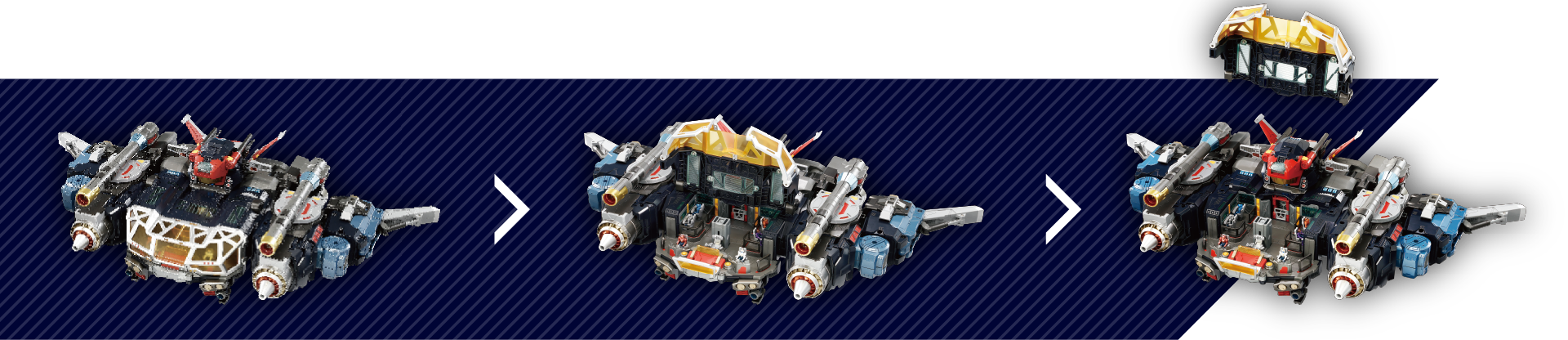 ロボットべース形態への移行と共にメインブリッジ各部の機能はロボットベース総身駆動モードへと切り替わり、ロボットべースの基本操縦は<マスターパイロット>1名に委ねられる。各乗員は火器管制、エネルギー管制、防御管制等、マスターパイロットを支援するサポートオペレーターとなり、チームが一丸となって鋼鉄の巨体を円滑に駆動させるのだ。