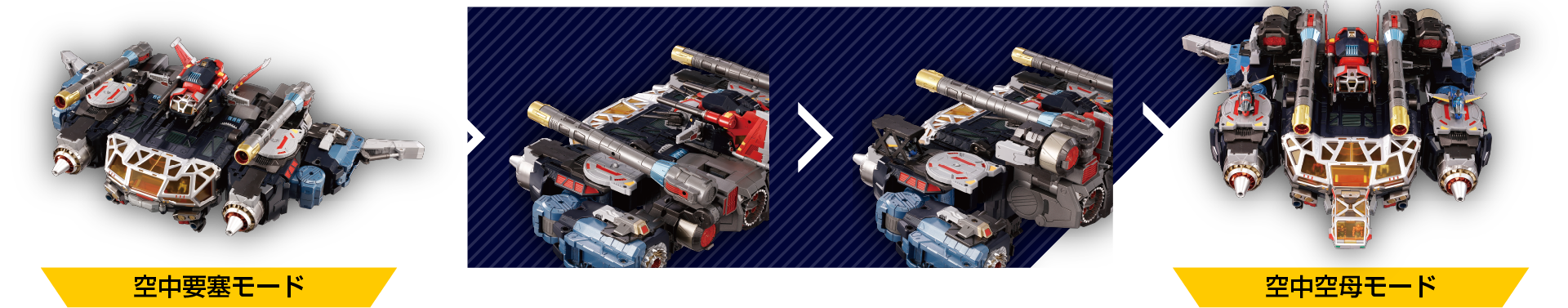 各種艦載機の発着機能を優先させた空中空母形態。発着を妨げない様にフリーゾンビーム砲は中央寄りに展開移動している。ホバリングで空中停滞した状態で運用、機体上部のガンナーブリッジが航空管制機能を担う。