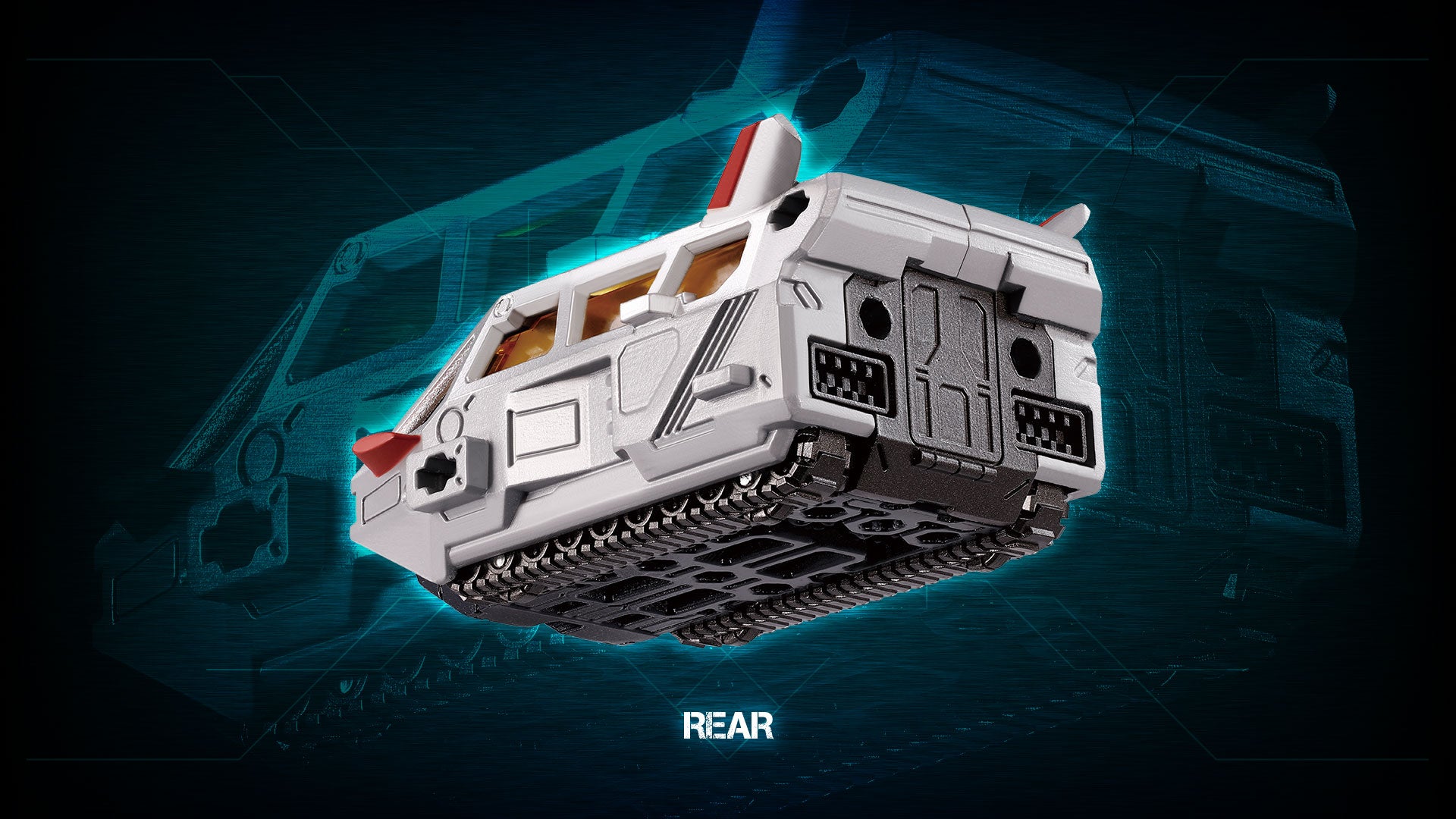 乗員/物資の搬送から戦闘までこなす多目的シャトル機。対爆構造の堅牢な機体で下部には地上走行用のクローラーを装備、空陸海あらゆる環境下での運用が可能なハイブリッドパーパスマシンだ。最大乗員6名。