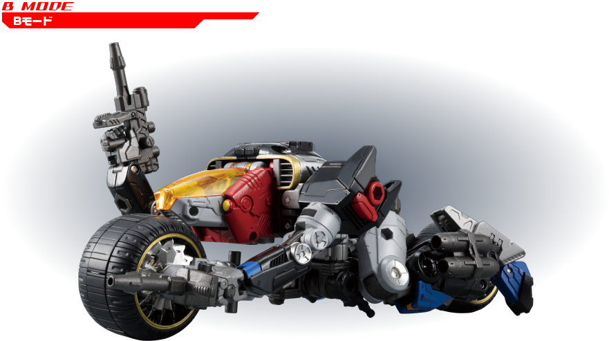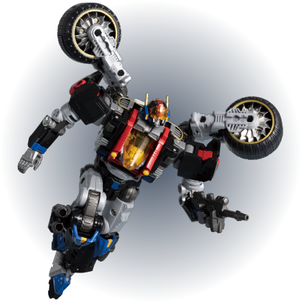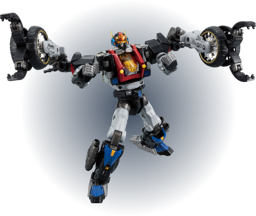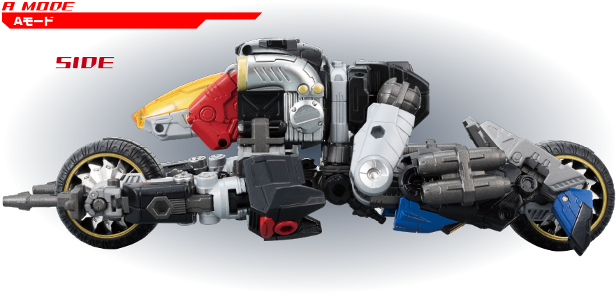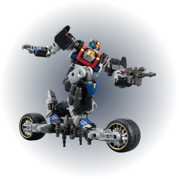 脱着可能なマルチロールユニット<エクゾ・リゾルバー>を標準装備、マシンモードでは超高速走行機能、決戦機動モードでは飛行と砲撃機能、メックモードではパワーアーム機能のユニットに瞬時に可変する。