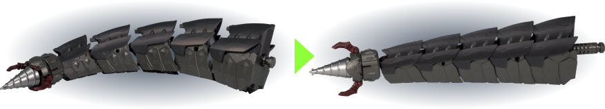 巨獣モードでは尻尾ユニットとなり 魔人モードではサーベル型の武装となる蛇腹型レイダー。魔人モードの背部に懸架する事も可能だ。