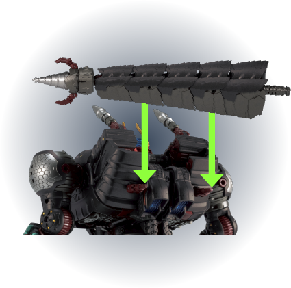 8か所の結合ポイントを備え 戦艦状の飛行形態から2足歩行型の機動マシンとなる可変機能を持つ。<ポッドバンカー>同士が結合し巨大な4足歩行型マシンと化した<ギガンター>の目撃例も報告されている。