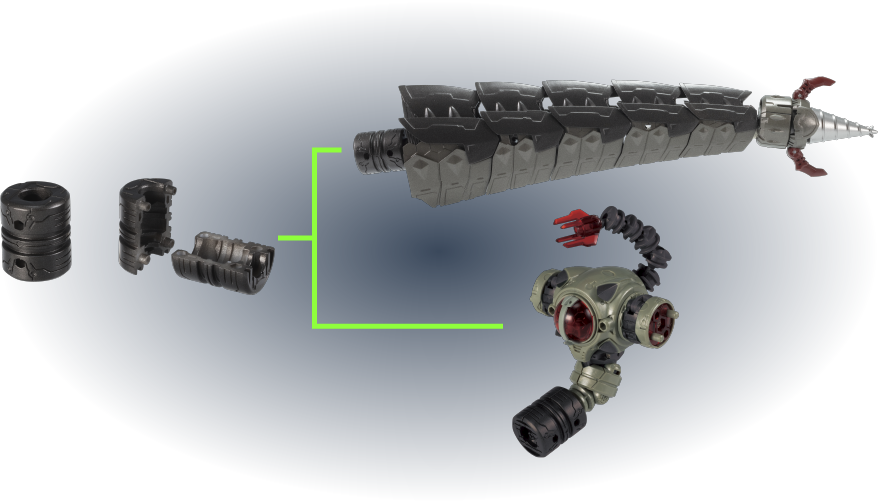 サーベルヘッドのグリップ部やワルダースーツの末端に接続する事で20ミリ凸ジョイント化する事が可能。