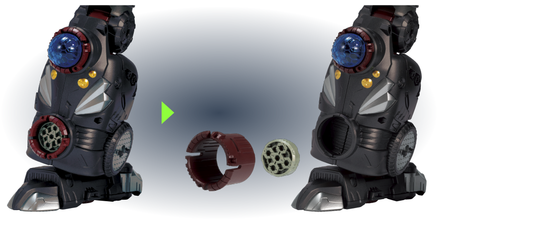 ワルダロス<ギガンター>は別個体の<ギガンター>やワルダースーツ、ワルダレイダー、さらにそれらがエヴォライズ化やマルチプライズ∞化した状態との強化融合を自在に行う<アヴゾライズ>と命名された機体再構築機能を持つ。腕部、上半身等 機体の部位を破壊しても 忽ち周囲のワルダーメカが欠損した部位に擬態化し融合する事で機能を低下させる事無く戦闘を続行する事が可能なのだ。