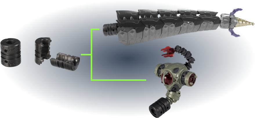 ヘッドユニットは2機のサーベルヘッド(尻尾パーツ)を接続可能。