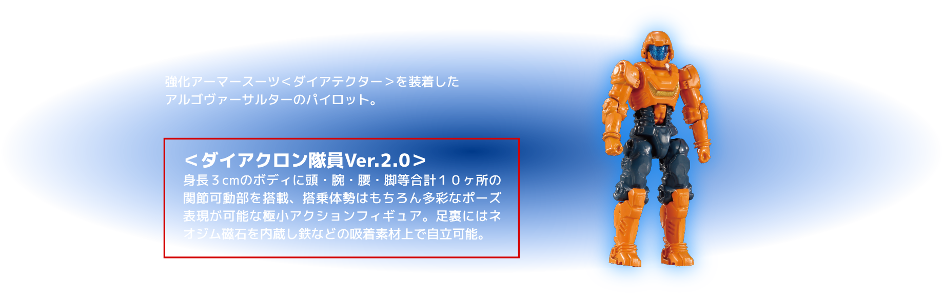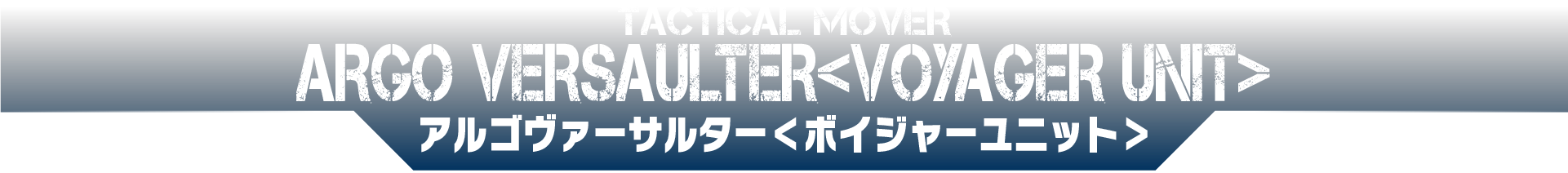 一連のタクティカルムーバー機は勿論の事、ダイアクロンマシンの多くは地上・水中・超高真空での活動が可能なマルチパーパス仕様であるがアルゴヴァーサルターは水中専用とも言える程に水中戦闘機動に特化した機体として機動特化ユニット<ボイジャーユニット>と共に開発されている。正式名称は<ARGO-VERS-ASSAULTER>、略称は<ARGO-V.A>。スタンダードモデルの機体色はダークブルー。