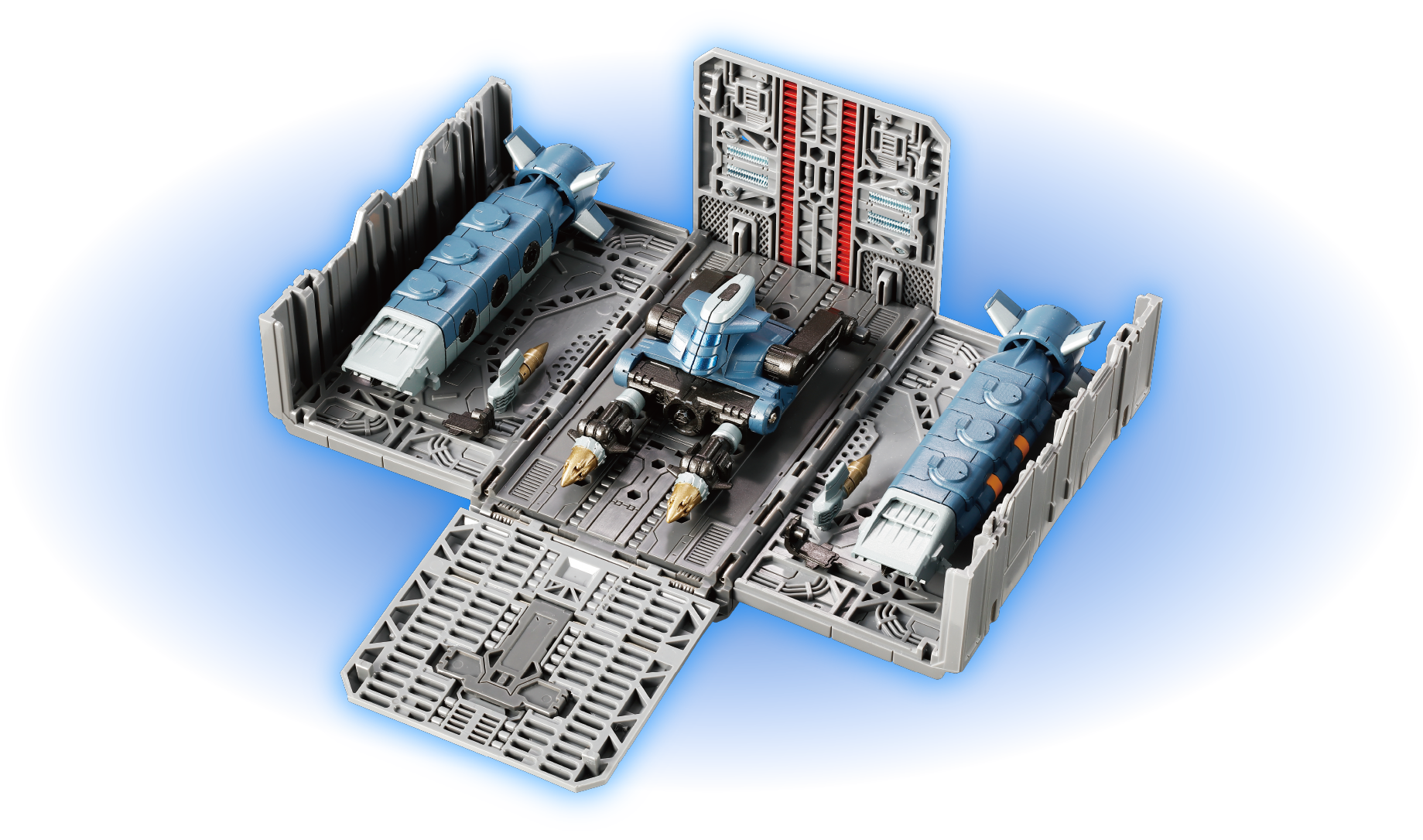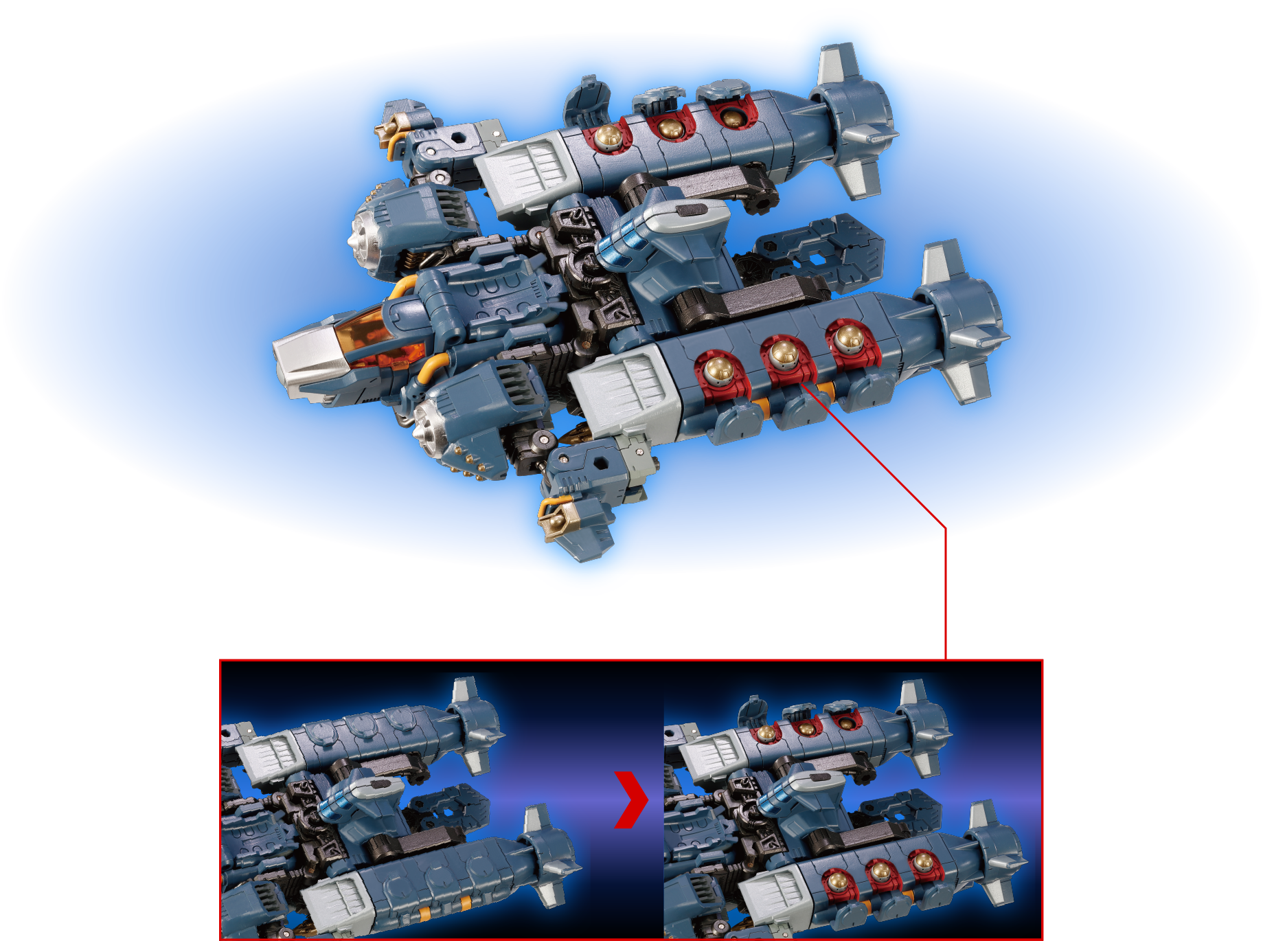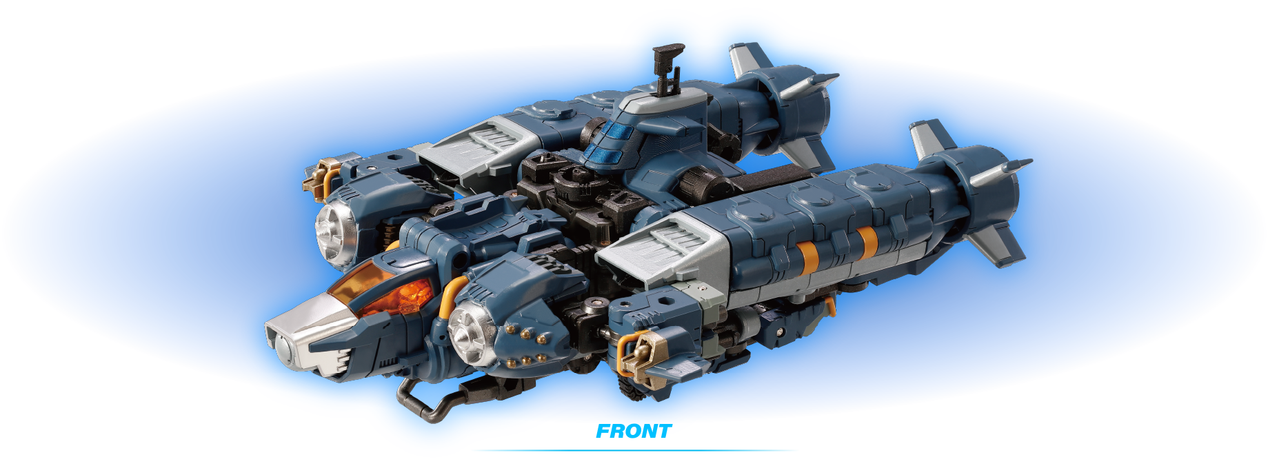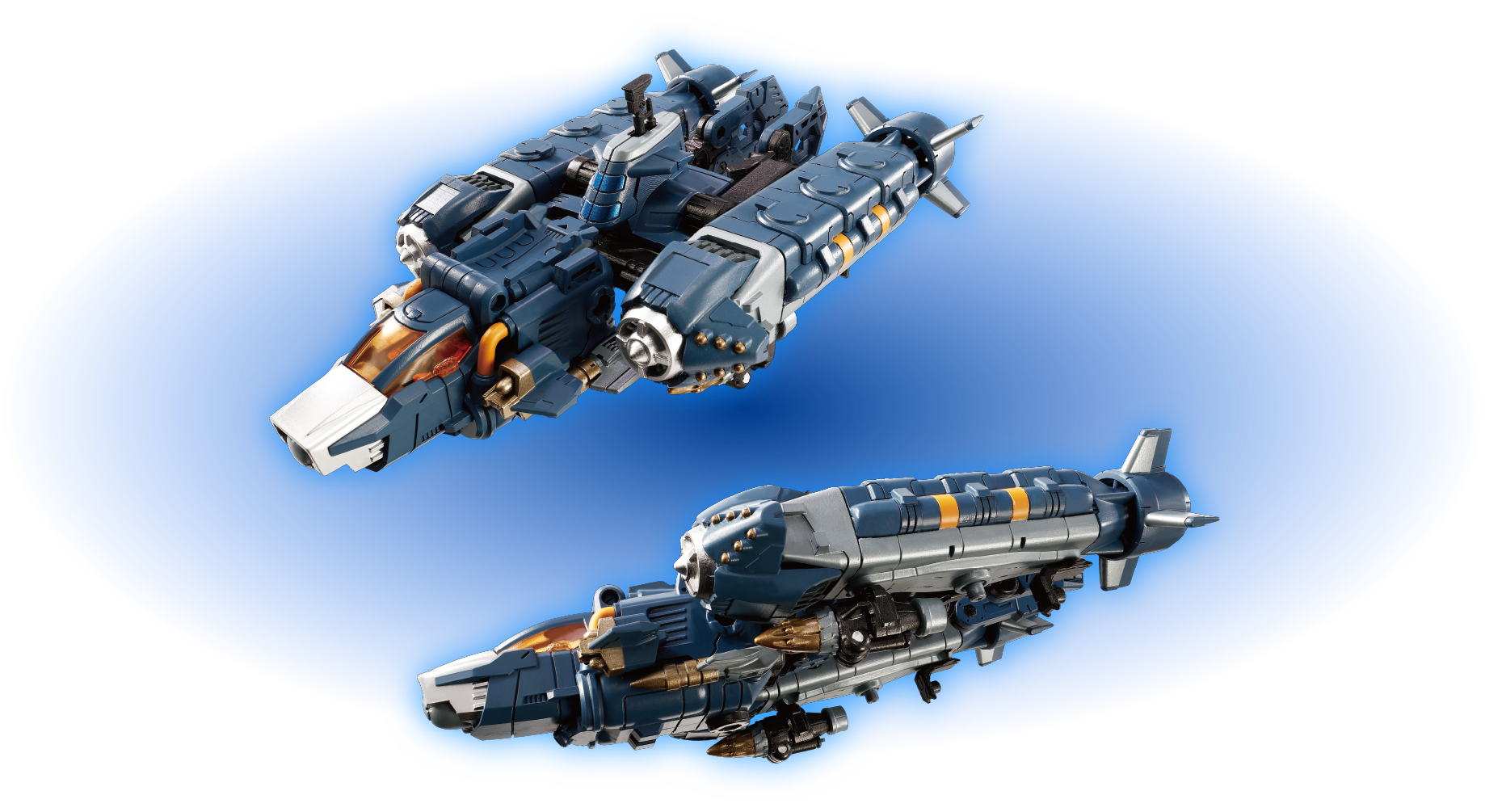 セイル型センサードームを備えたセンター部と2基の大型推進ユニットで構成された水中機動航行ユニット。推進ユニットはマルチロール型ミサイルや光子トライデント等の武装搭載の他、インテーク部に超高温の衝撃波・プラズマショックウェーブの発射器を備えた水中攻撃ユニットでもあるのだ。
