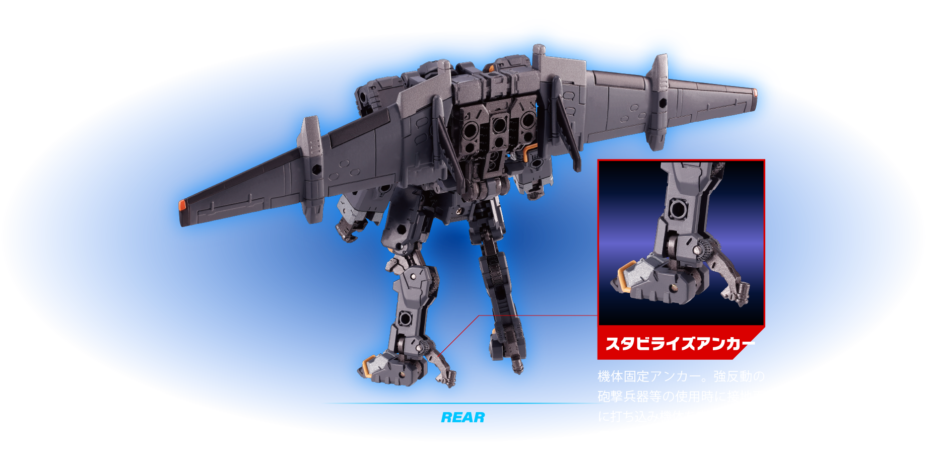 長距離の高速移動が可能なマシンモードで出撃、作戦展開地点でメックモードまたは決戦機動モードに移行降下し戦闘機動を行う。エアボーンユニットを装着した状態での空中戦闘機動も可能だ。