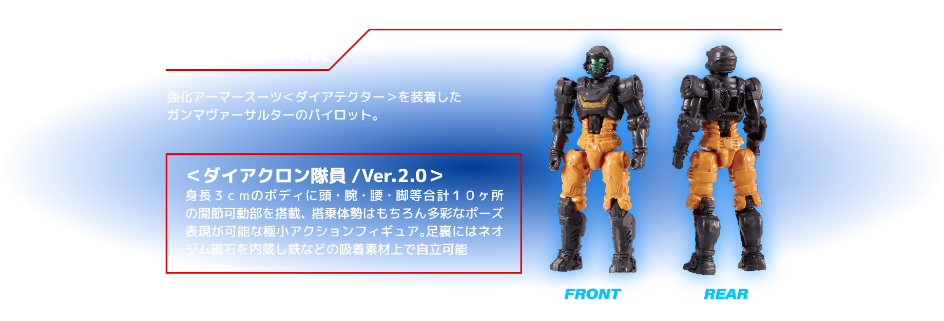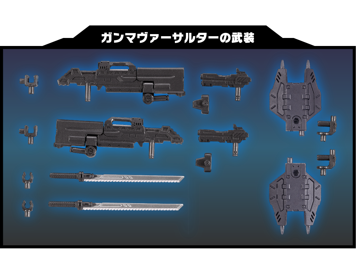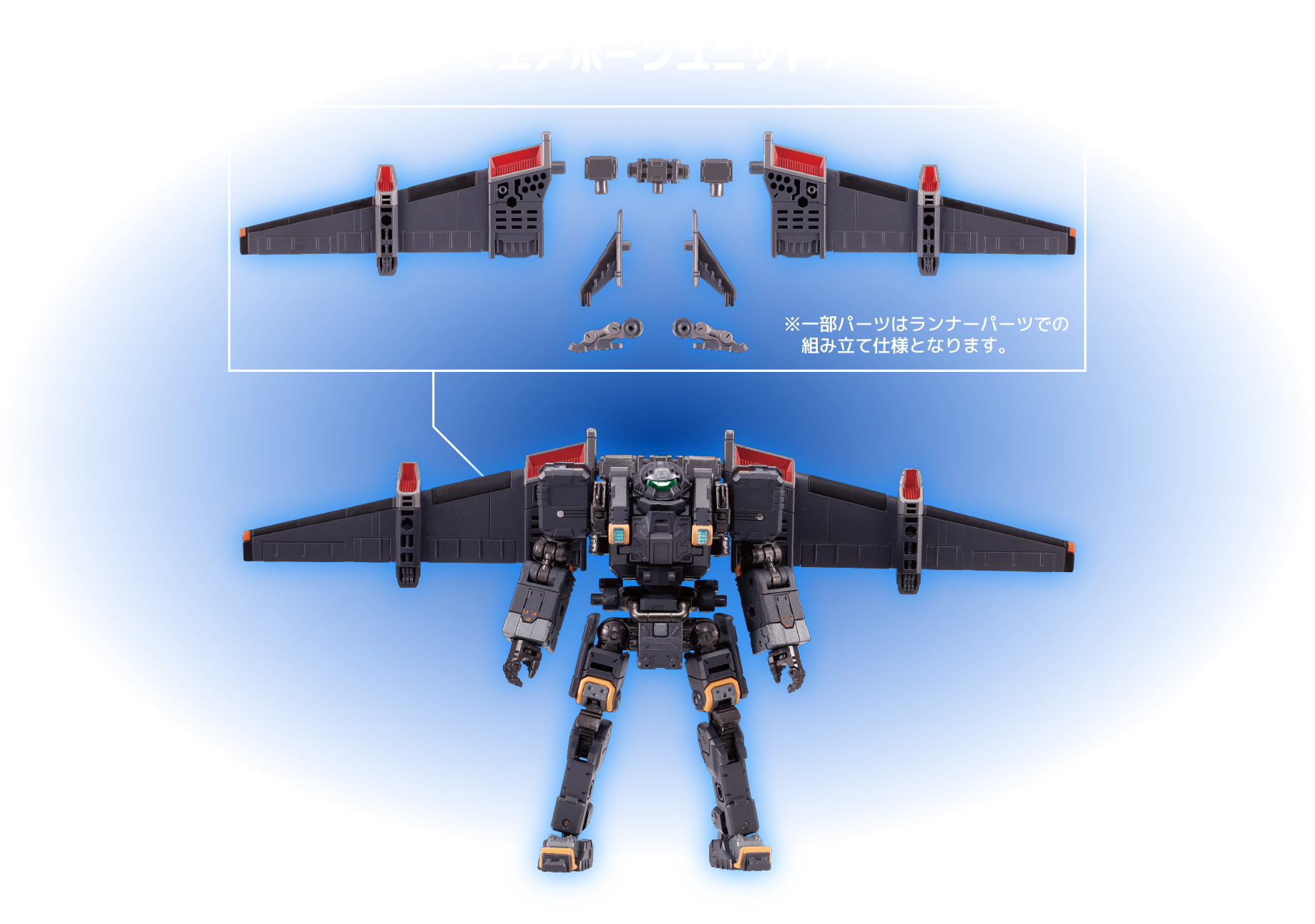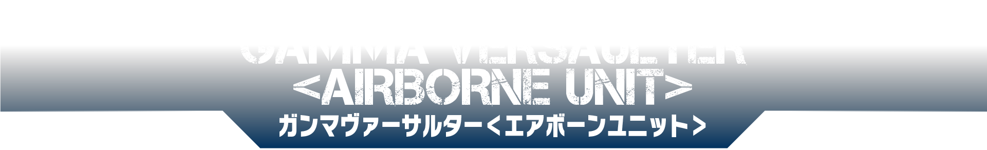 飛行機能を拡張するウイングブースターとユニット接続時の機体着地バランスを安定させるランディングギアから成る<エアボーンユニット>を装着したガンマ ヴァーサルターの空挺仕様。機体基本カラーはダークグレー。