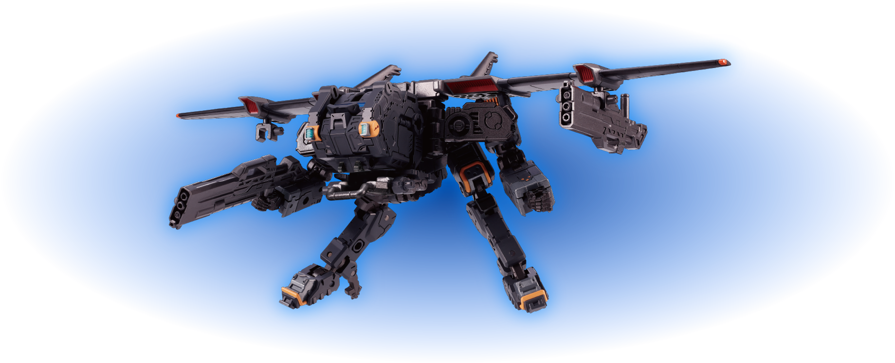 長距離高速飛行マシン形態。機体各部に標準武装を懸架、重機銃スティンガーZ-1は懸架状態での使用も可能。