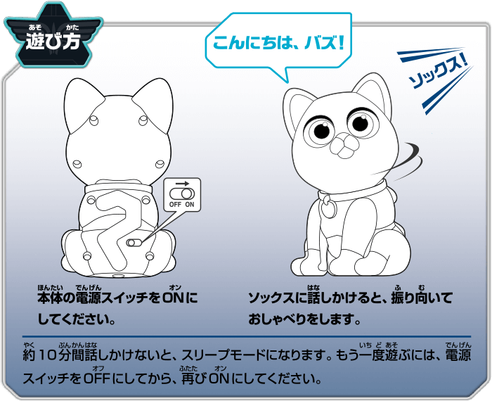 バズ・ライトイヤーの相棒ソックスが、話しかけると、振り向いて、こたえてくれる!