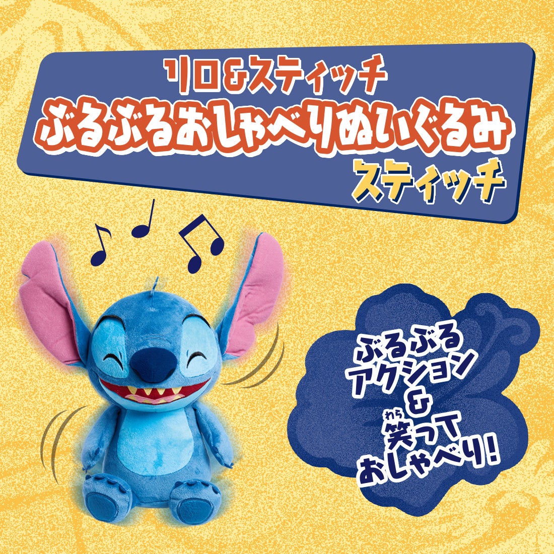 スティッチを抱き上げてゆらすと笑っておしゃべり、体をぶるぶるさせるよ!