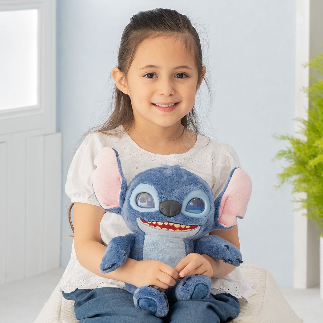 スティッチのいたずら好きで愛らしい個性を再現したインタラクティブぬいぐるみ。