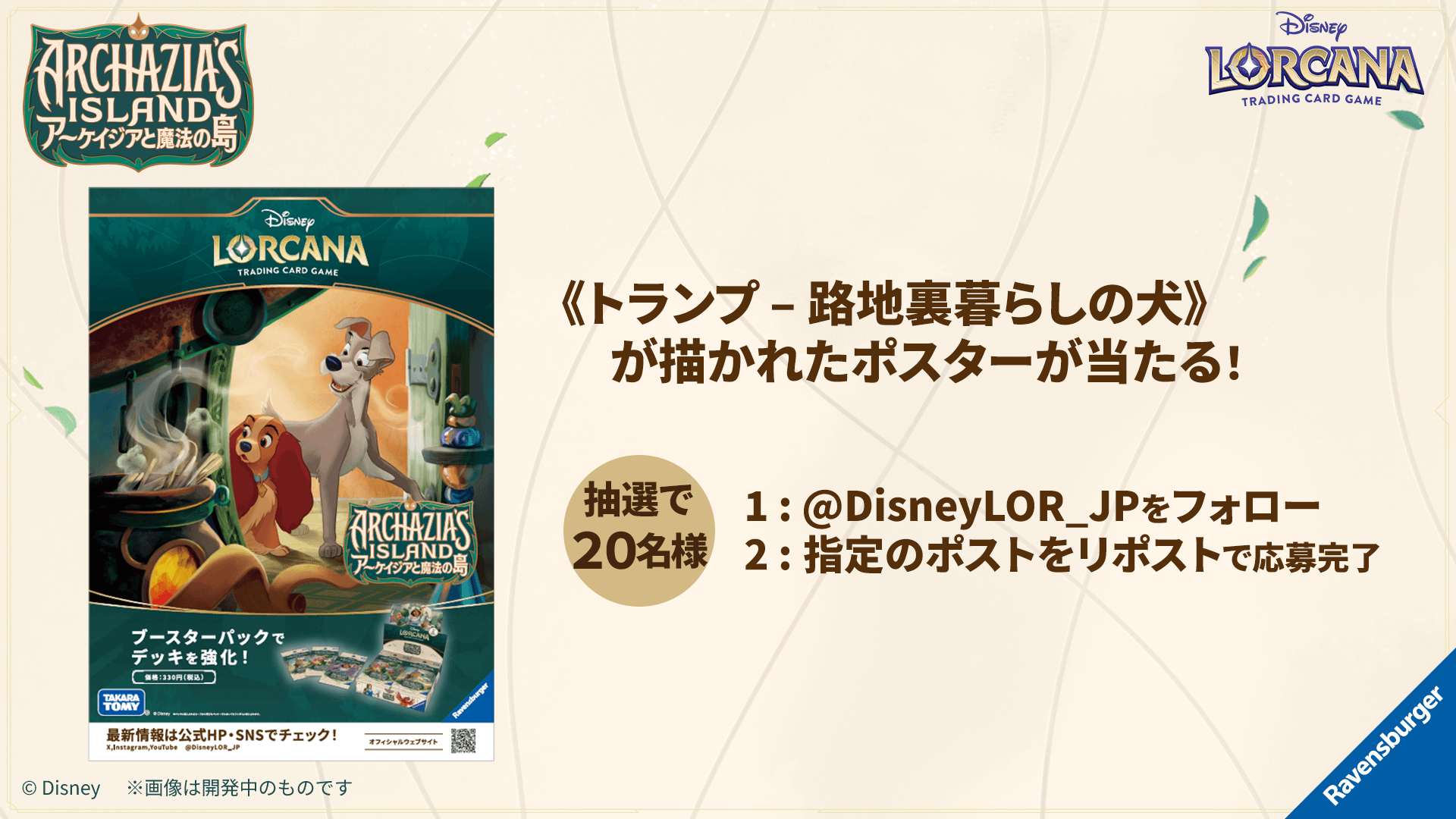 「ディズニーロルカナ【公式】 X(@DisneyLOR_JP)」をフォローの上、対象の投稿をリポストいただくと抽選で20名様に《トランプ – 路地裏暮らしの犬》が描かれたポスターをプレゼント!