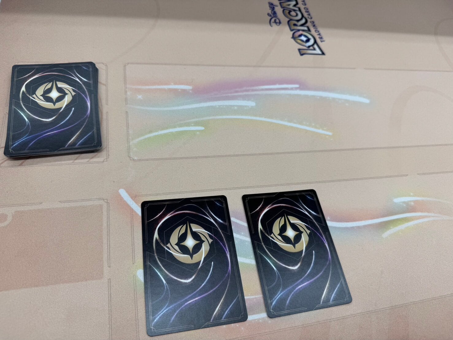 - ゲーム開始時、デッキの上から2枚のカードを裏向きのままインクウェルに置いて開始します。