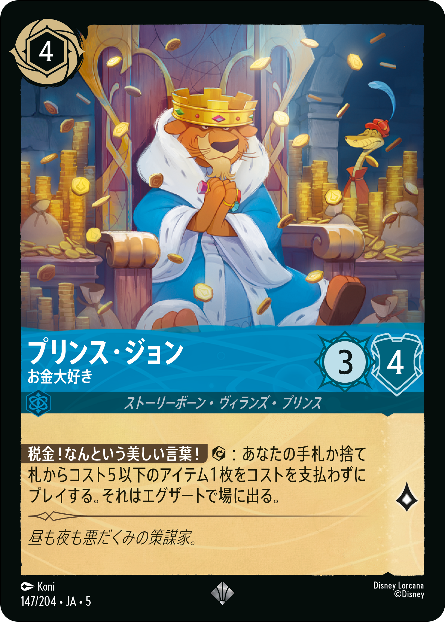 対戦相手がロア値の高いキャラクターを場に出しているならば、《プリンス・ジョン – 虎視眈々な贈賄者》をプレイしてクエストを牽制しましょう。