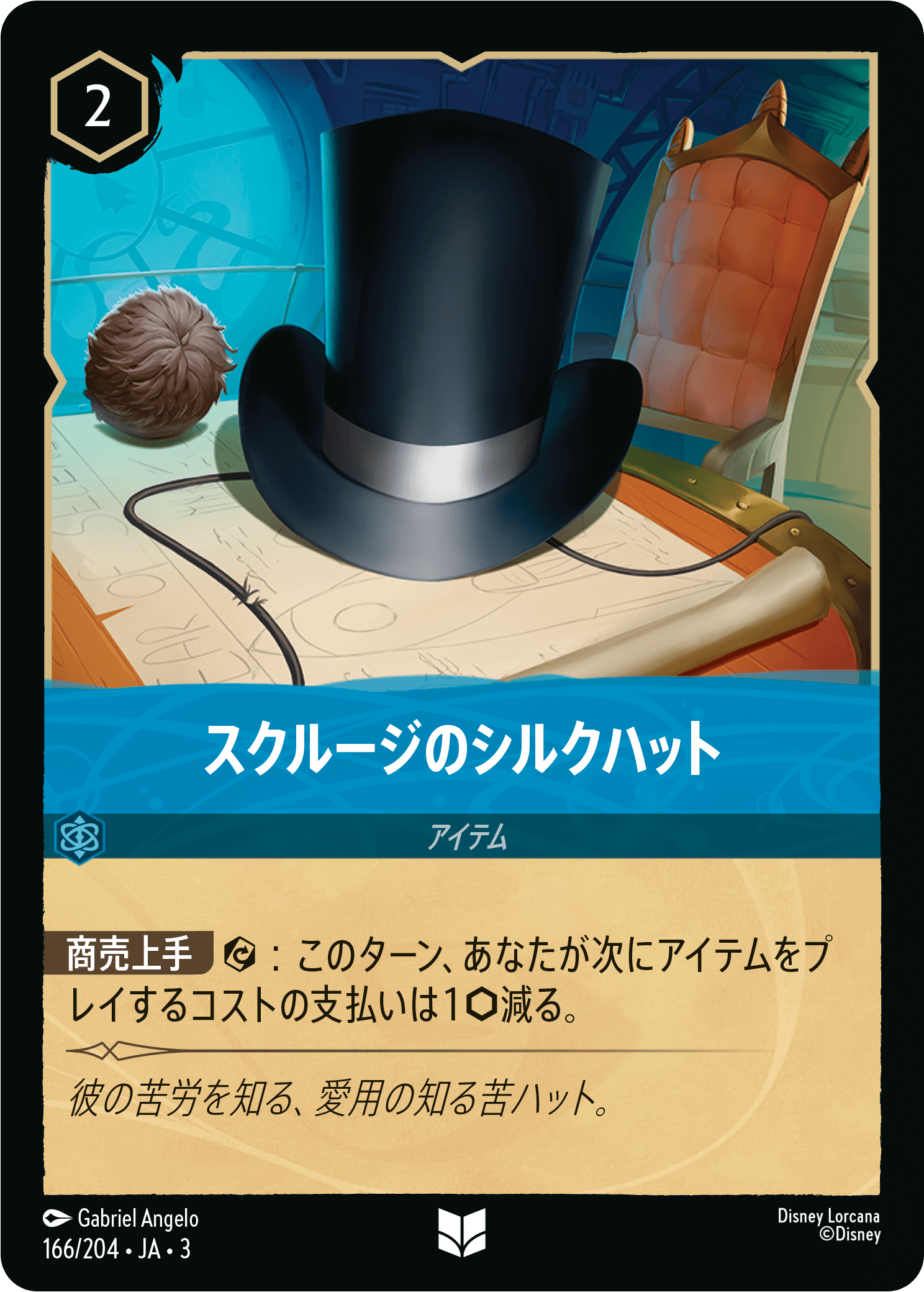 2ターン目には《スクルージのシルクハット》をプレイし、ゲーム中盤への下準備をしておきましょう。これで次からプレイするアイテムのコストを軽減できます。
