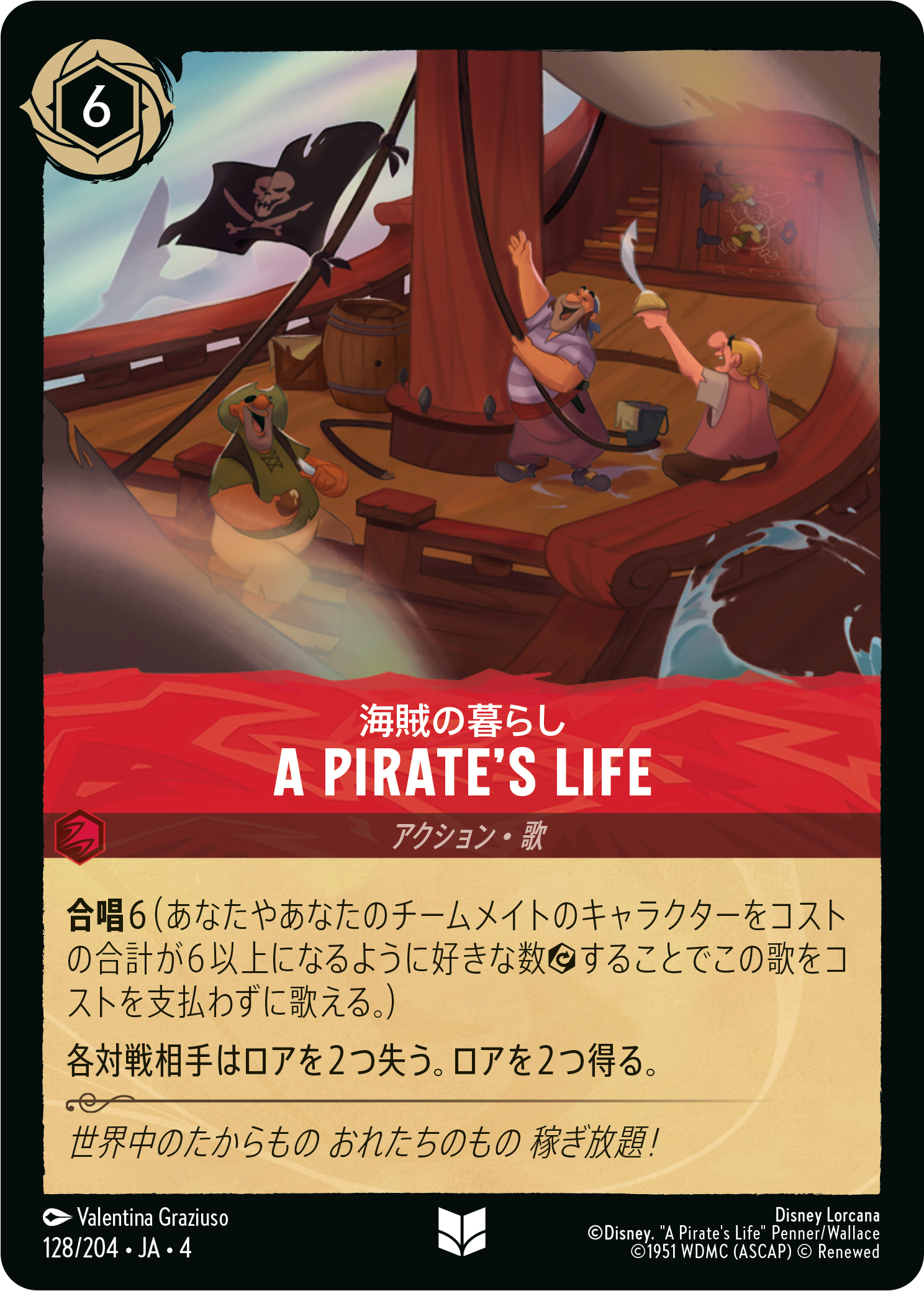 《マウイ – オレって半サメだろ?》で場を制圧しつつ、同時にアクションカードをプレイしてロアを獲得していくわけですが、それを締めくくるカードが必要です。《A PIRATE’S LIFE》はこのデッキに相応しいアクションカードといえます。