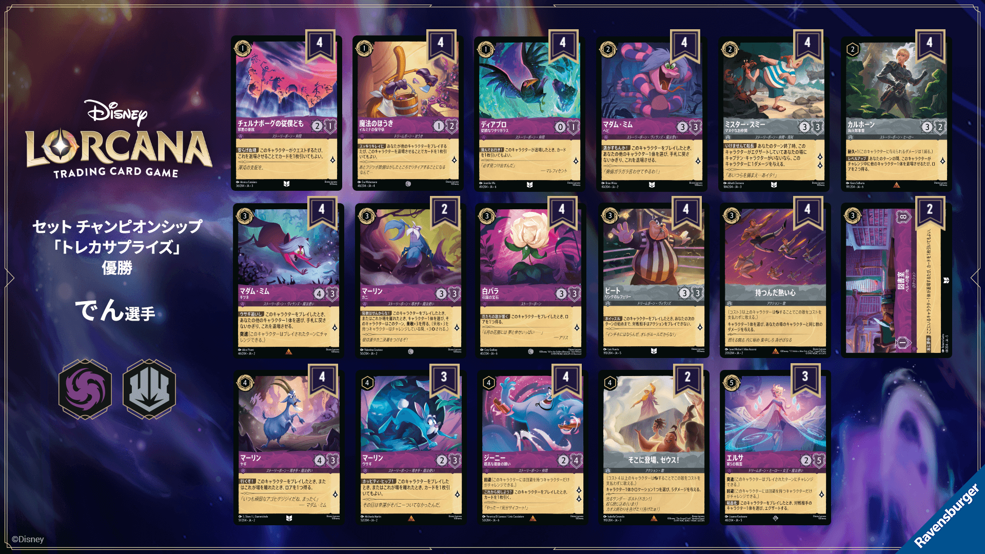 「ディズニーロルカナ 最新デッキ情報局」では、「セット チャンピオンシップ」などの大会結果を紹介し、初心者・中級者の方にも分かりやすい説明で、最新のディズニーロルカナゲーム情報を皆様へお届けしていきたいと思います。