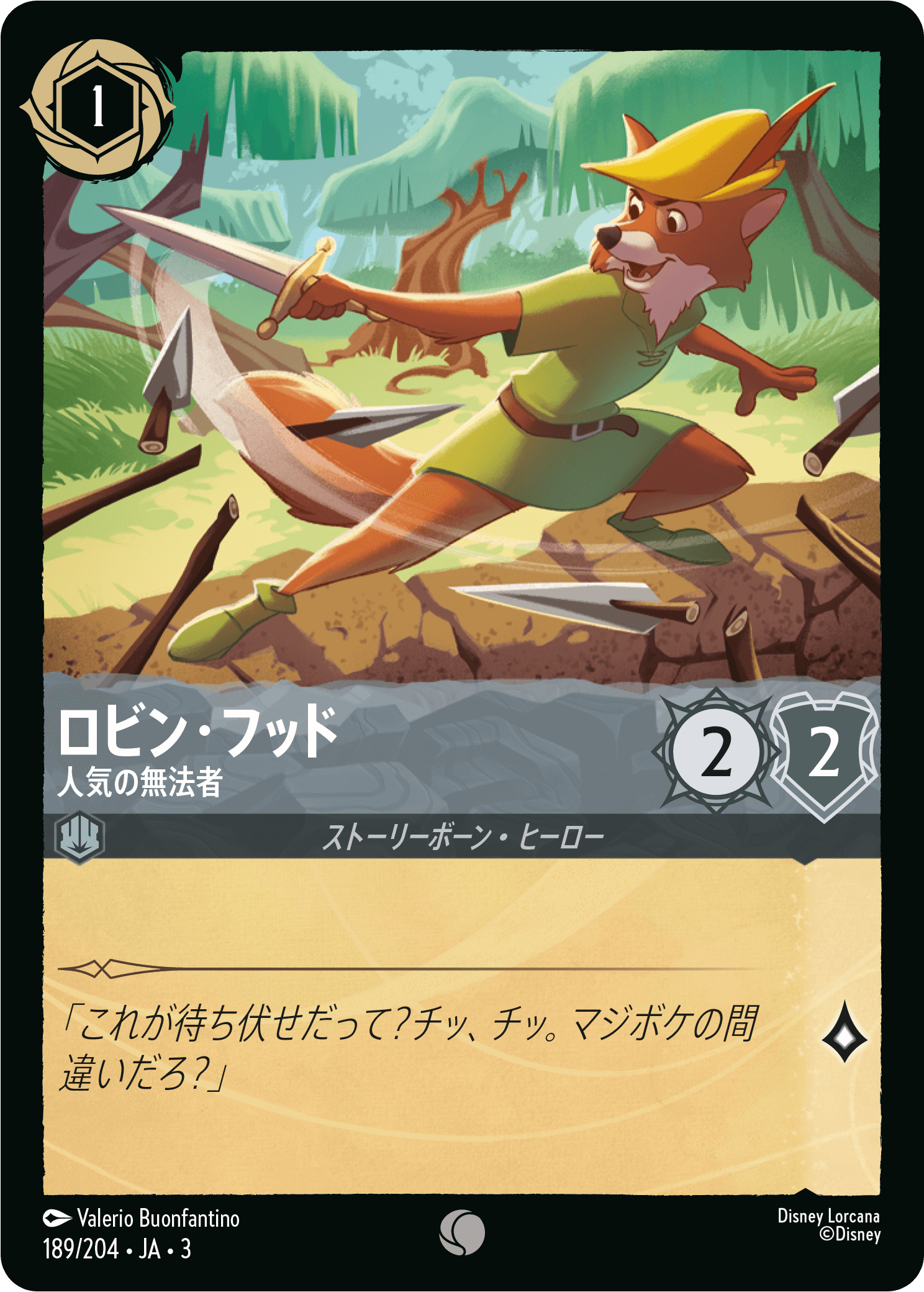 特定の組み合わせで運用できるカードがセットで揃っているかどうかも重要です。例えば序盤の強力な動きである《シンデレラ – 舞踏会の花形》と《風よ吹け》のキャラクターと歌のセットや、変身前後のキャラクターのセットです。《ロビン・フッド – 人気の無法者》が最速3ターン目に《ロビン・フッド – シャーウッドの英雄》へと変身すれば、ロアレースも場の主導権も思いのままとなります。