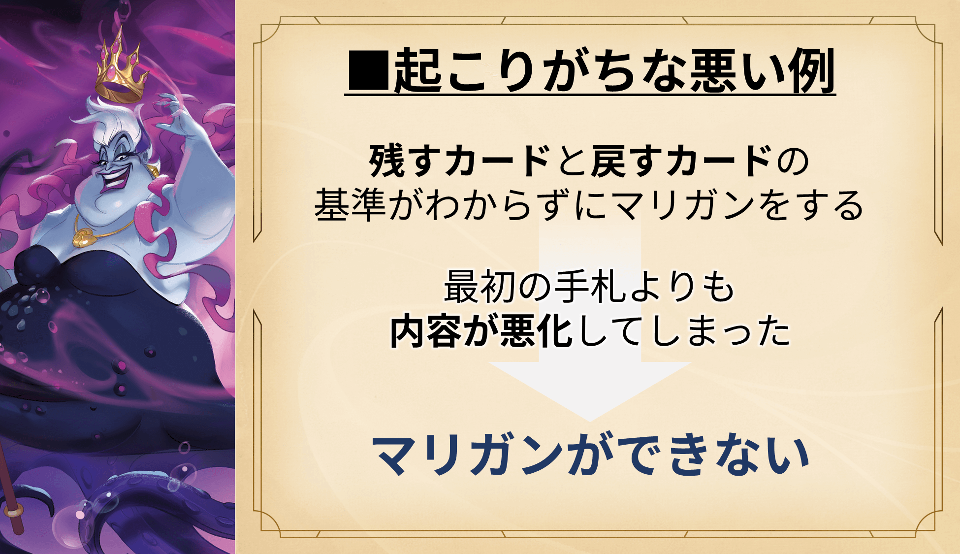 マリガンは最大7枚のカードを一度に引けるため、上手く活用すれば思い通りのゲーム展開を演出する助けとなります。その反面、誤ったカードを残したり戻したりすると、円滑なゲーム展開が阻害されてしまいます。