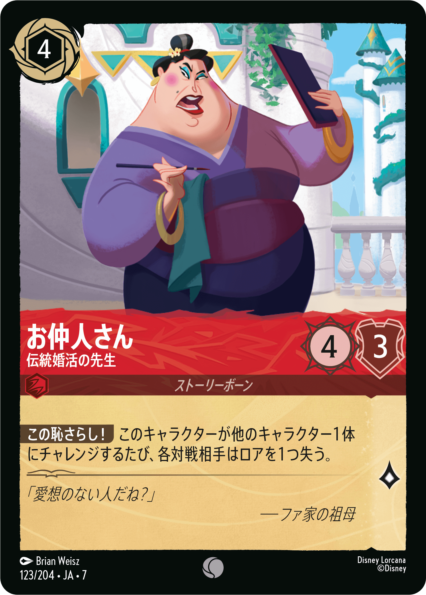 《お仲人さん – 伝統婚活の先生》はまさにルビーらしいロアを失わせるキャラクターです。中盤にプレイできるため、序盤に出ていたキャラクターを退場させつつ、稼いだロアまで失わせることができます。