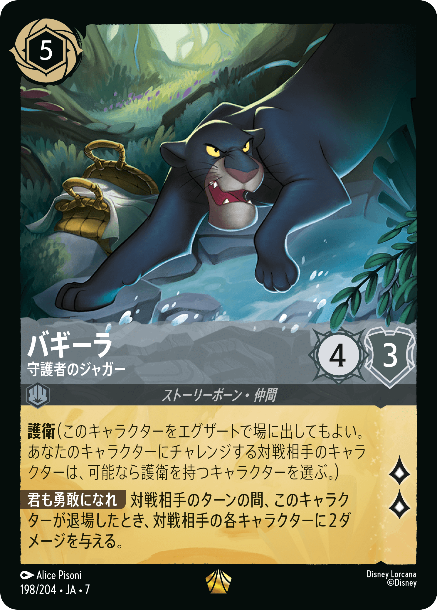 《バギーラ – 守護者のジャガー》は条件こそあるものの、その《剣をふるえ!》を内蔵したキャラクターです。護衛により自分のほかのキャラクターを守りながら、淡々とロアを稼いでいけます。ロアレースでリードできれば対戦相手は泣く泣く《バギーラ – 守護者のジャガー》へチャレンジするしかありません。