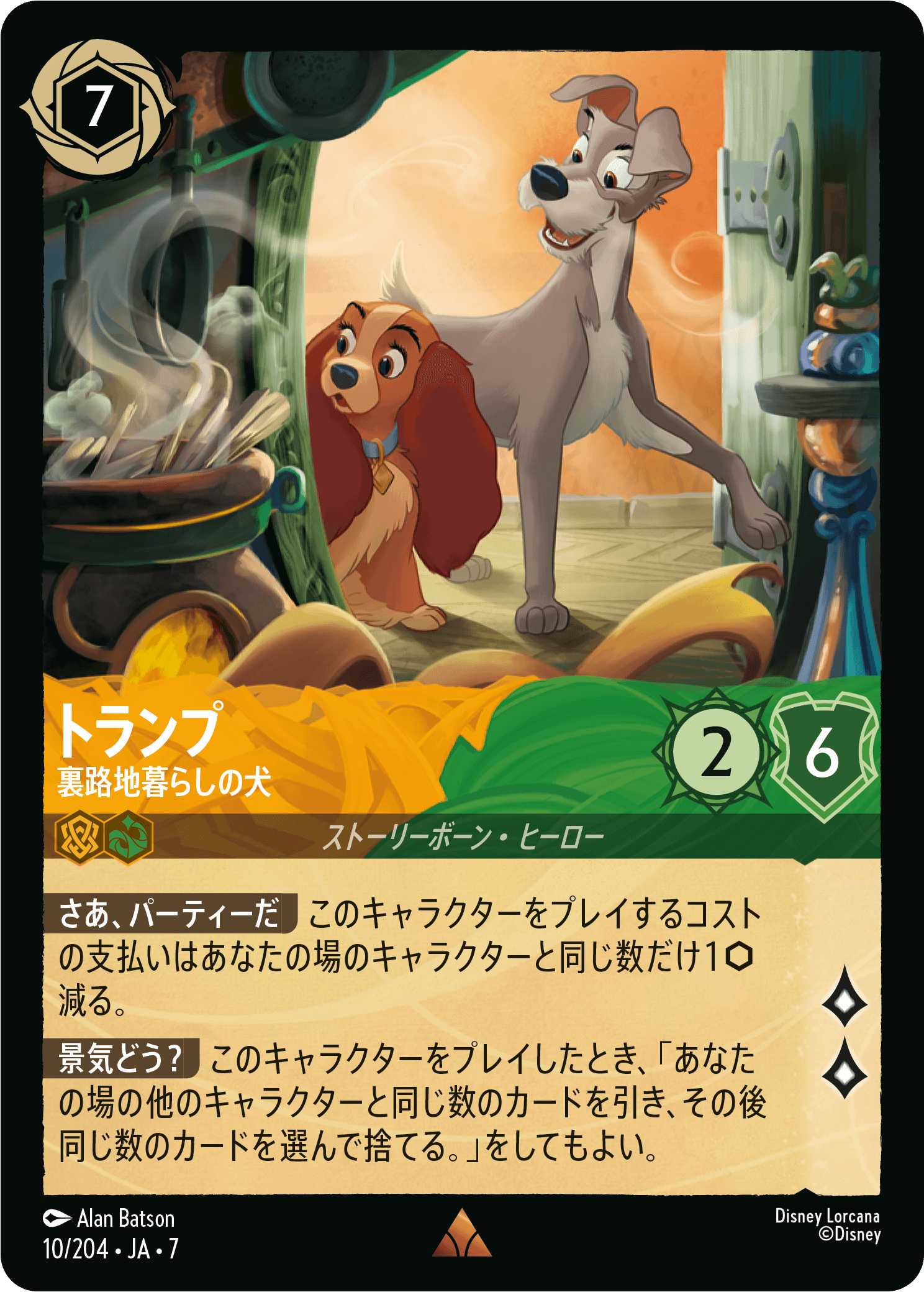 キャラクターの頭数を揃えることで《トランプ – 裏路地暮らしの犬》コストを下げ、早期にプレイする狙いがあります。プレイ時に大量の手札入れ替えができ、手札の最適化が図れます。不要なインクレスのみならず、あえて《リロ – 抜け出し名人》を捨て、次のターンに捨て札からプレイするなどお得な使い道もあります。