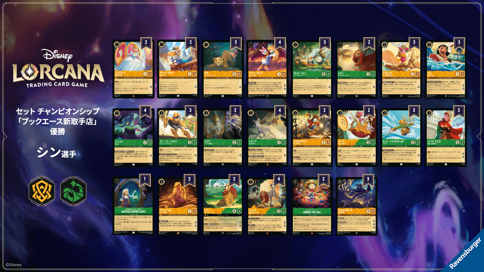 「ディズニーロルカナ 最新デッキ情報局」では、「セット チャンピオンシップ」などの大会結果を紹介し、初心者・中級者の方にも分かりやすい説明で、最新のディズニーロルカナゲーム情報を皆様へお届けしていきたいと思います。