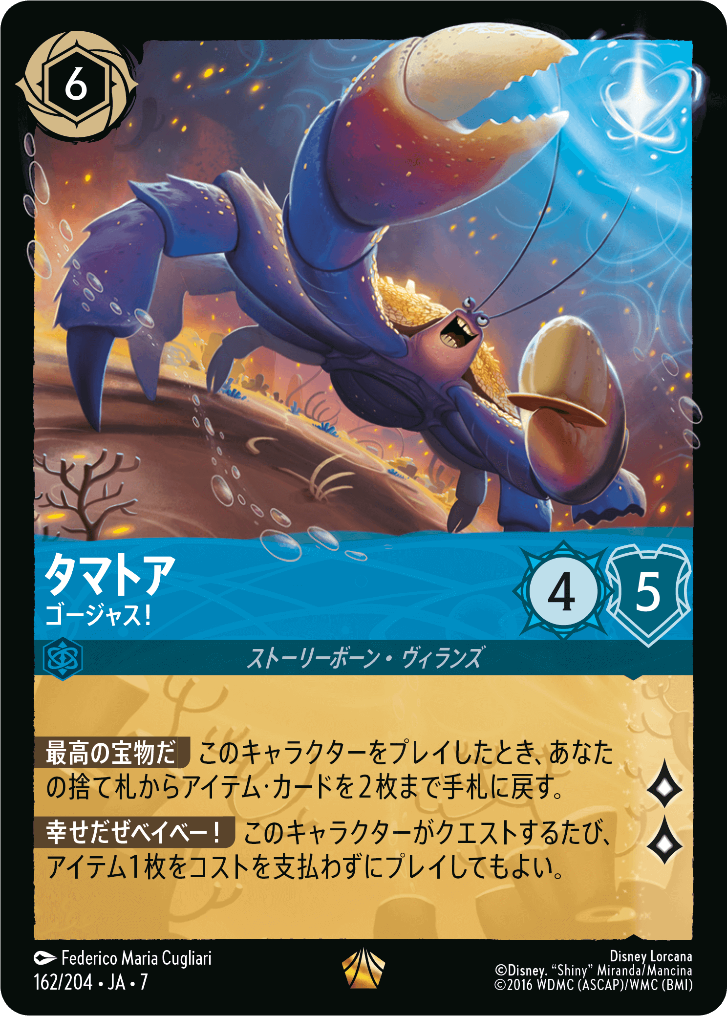 《タマトア – ゴージャス!》は攻撃力、意思力、ロア値のいずれも申し分ないデザインです。プレイ時にアイテム・カードを2枚回収できるため、《アイスポー》を使いまわせます。