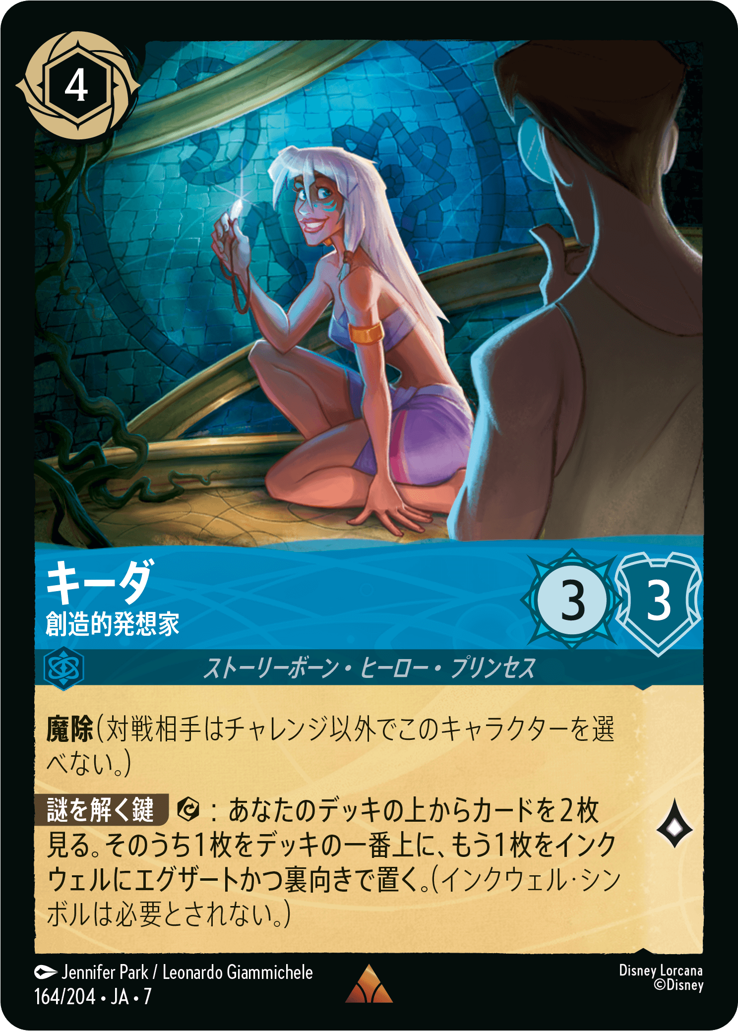 ニシオカ「チャレンジを有利に進められるのはもちろんのこと、プリンセス・キャラクターに対するメタカードでもあります。アンバー/スティールには《アリエル – 音響の戦士》や《シンデレラ – 剛胆なる姫君》などの高コストのプリンセス・キャラクターがおり、これらをたった4インクでクイックに対処できるため、大活躍しました」