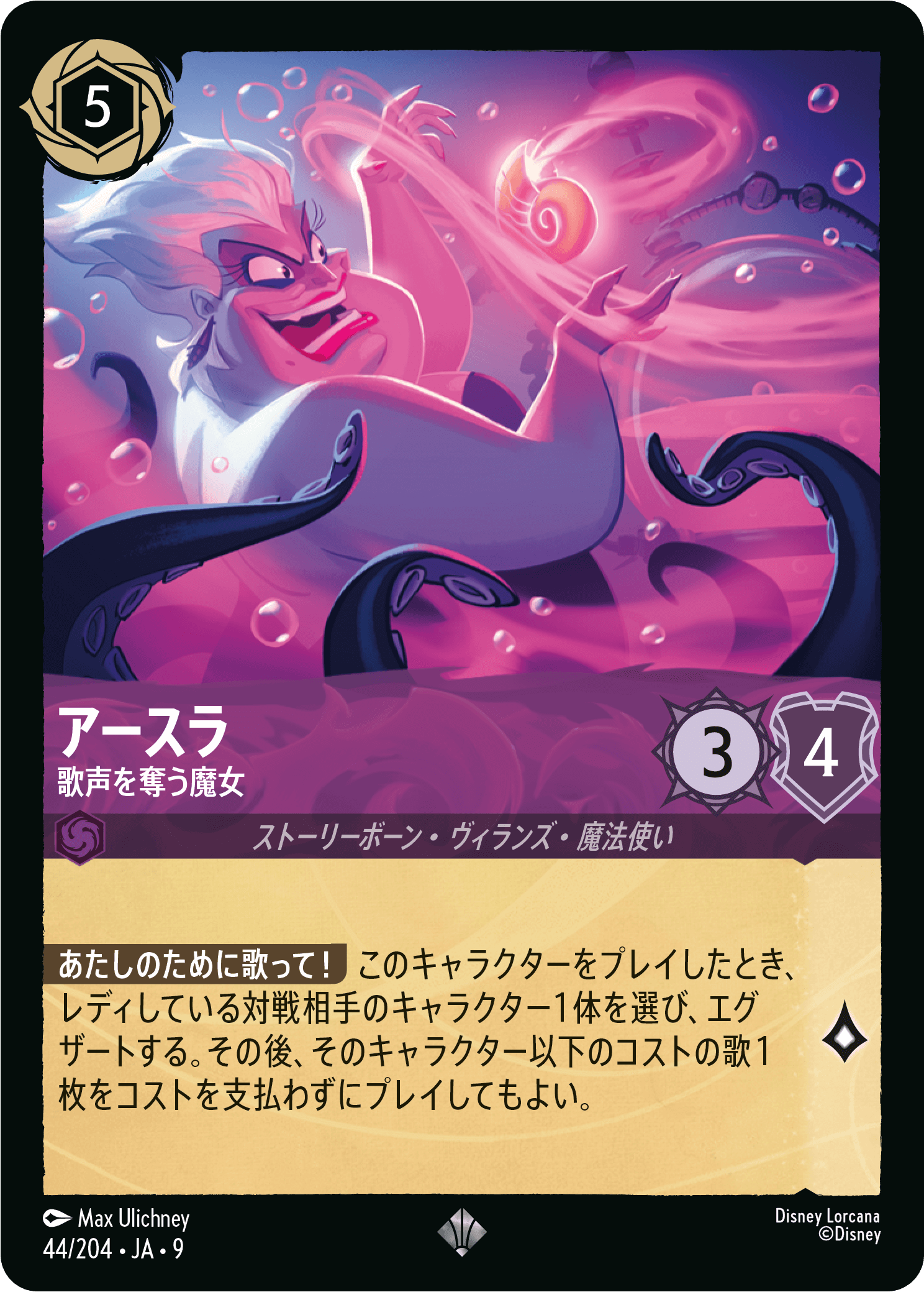 ご安心ください。その点も改善の兆しがみえています。《アースラ – 歌声を奪う魔女》はプレイ時にレディしている対戦相手のキャラクター1体をエグザートします。さらにエグザートしたキャラクター以下のコストの歌1枚をタダでプレイできます。