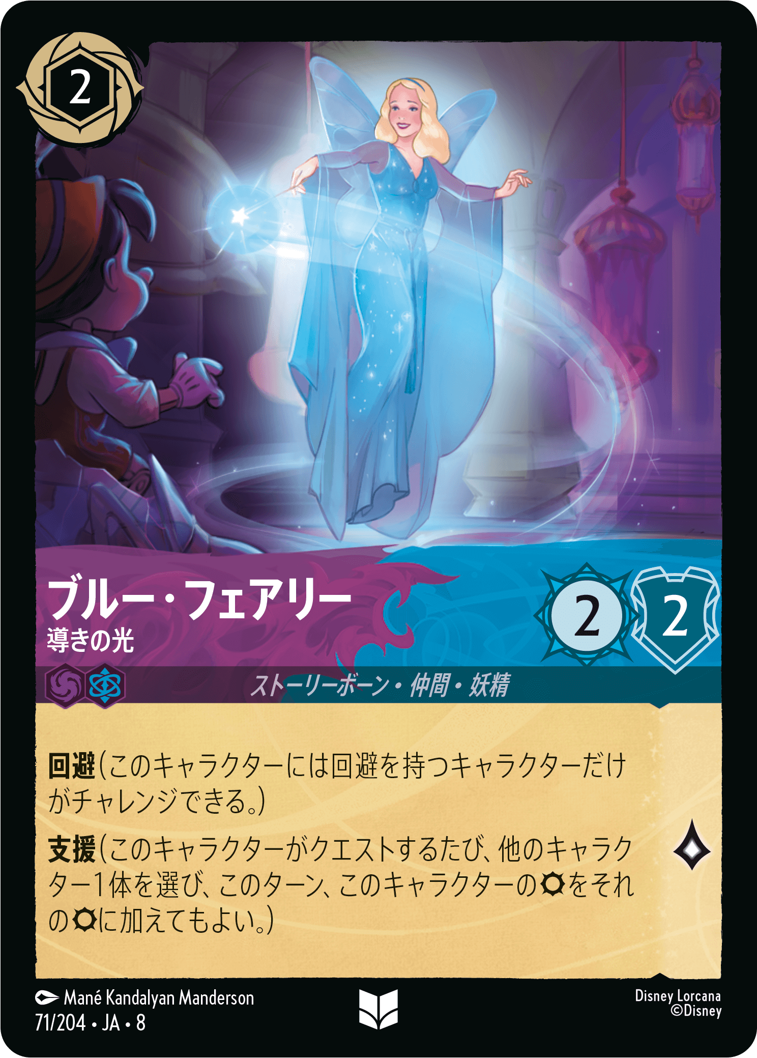 《ブルー・フェアリー – 導きの光》は空いていた2コストを埋めてくれる低コストの回避キャラクターです。チャレンジされることを気にせず淡々とロアを稼ぎ、さらに支援により自軍のチャレンジをサポートする縁の下の力持ち的な1枚です。