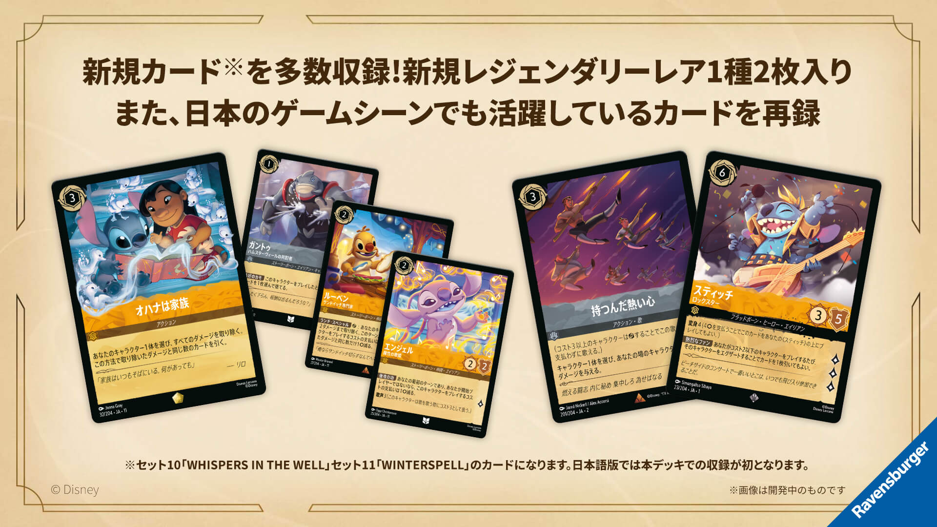 『リロ&スティッチ』のキャラクターたちが多く収録されており、テーマ性のあるデッキコンセプトを楽しむことができます。