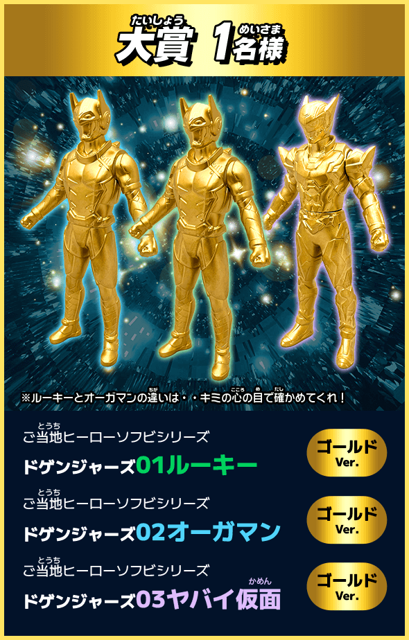 ドゲンジャーズのソフビと一緒に写真を撮ろう!