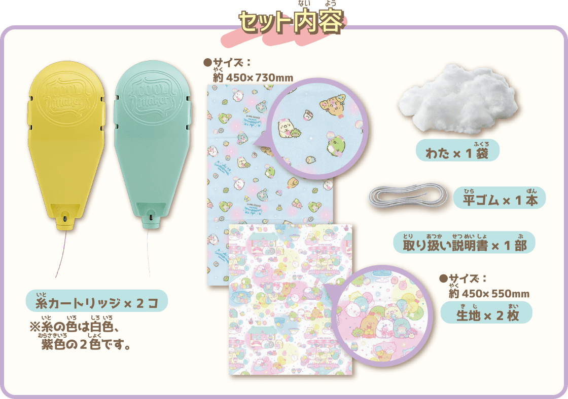 糸カートリッジは使い切りです。糸が無くなったら別売りの「リアルミシン ファッションスタジオ 専用別売りセット すみっコぐらし」をお買い求めください。