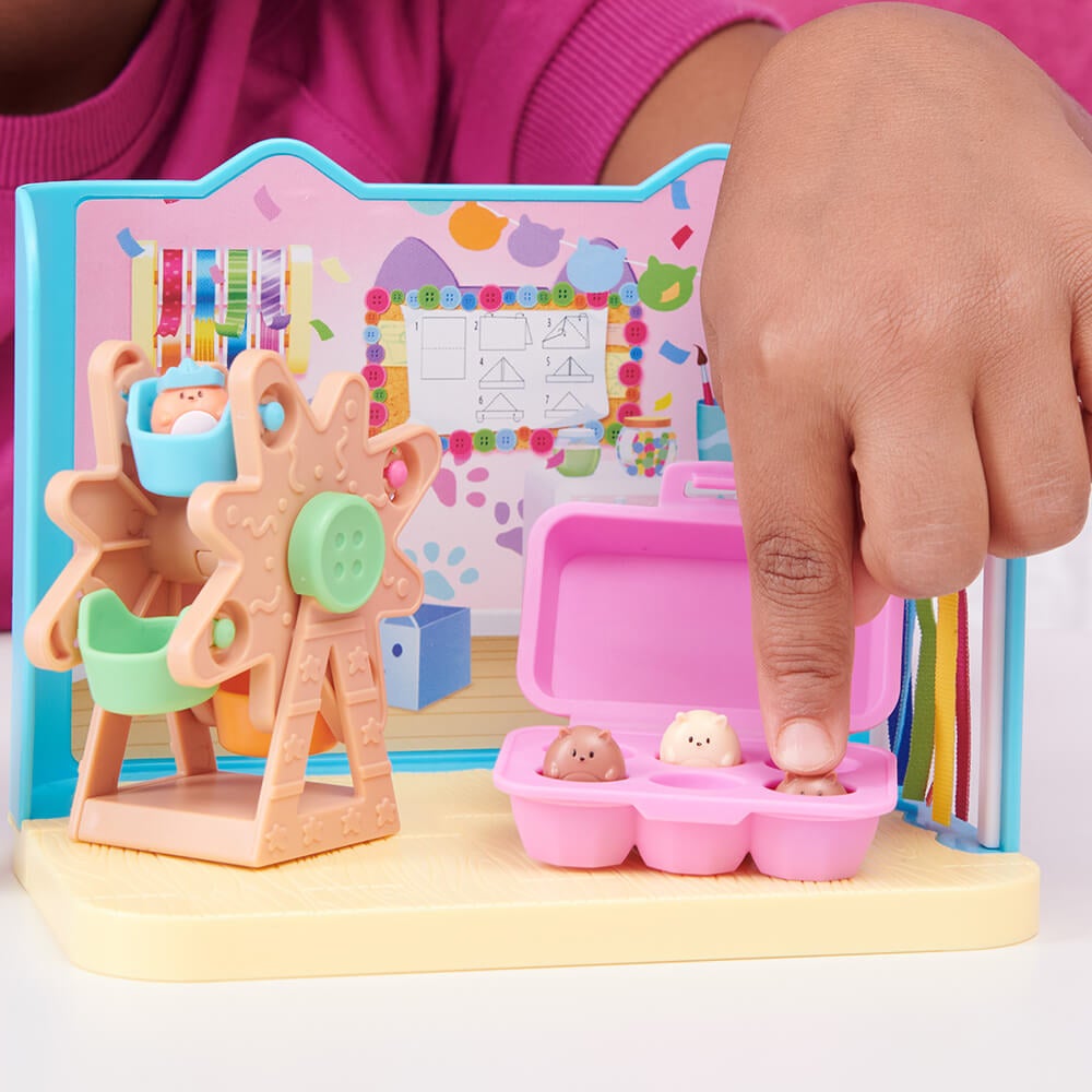 お部屋・フィギュア・家具・小物がセットになった、ベビー・ボックスとハムスターネコちゃんたちのクラフトルームです。