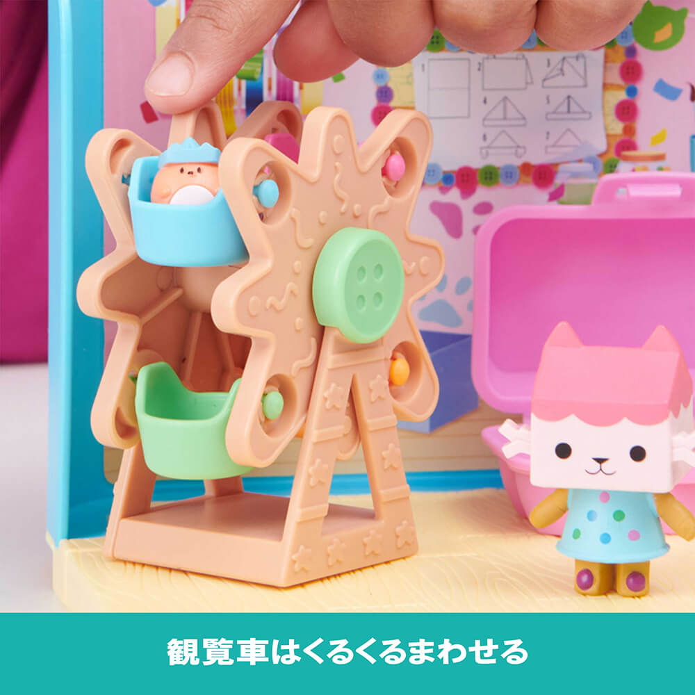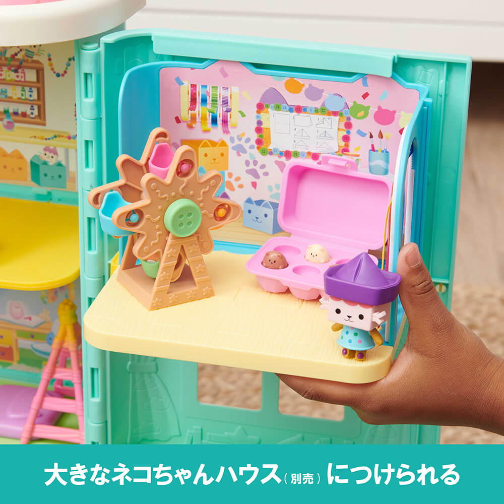 セット内容:ドア(1)、壁(1)、床(2)、観覧車(1)、卵ケース(1)、サプライズこもの(ぼうし)(1)、サプライズこもの(ハムスターネコちゃん)(1)、フィギュア(1)、ネコちゃんボックス(2)、取扱説明書(1)