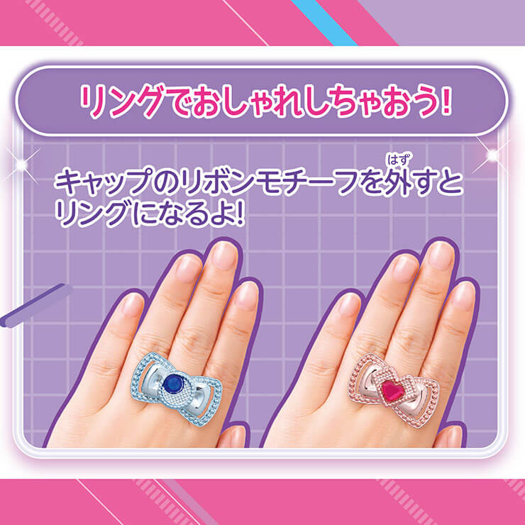 キャップのリボンモチーフは外してリングとして楽しめます。