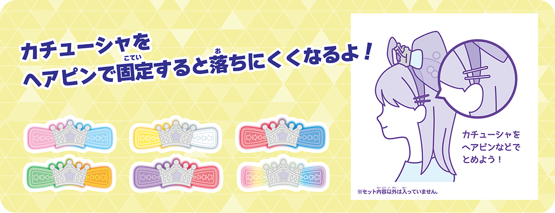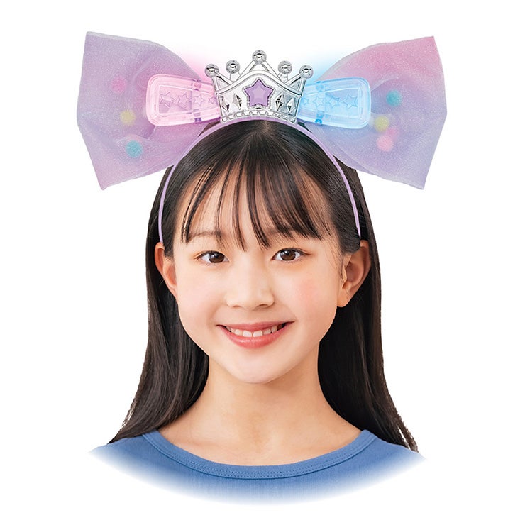 アニメにも登場する光るカチューシャ。 左右のカラーがグラデーションで変わり、スイッチで全6パターンのカラーに光らせることができます。