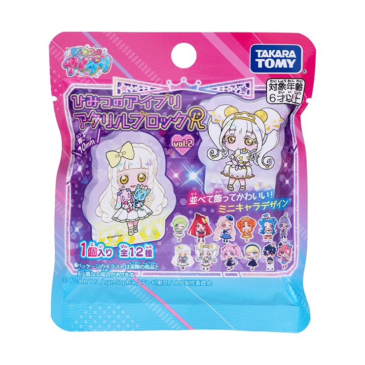 厚さ10mmのミニキャラデザインのアクリルブロックが登場! 全て描き下ろしイラストの全12種類で、どれが出るかはお楽しみ♪