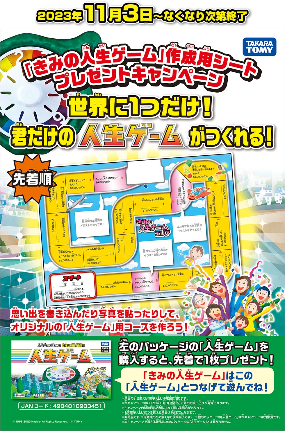 2023年11月3日~なくなり次第終了 世界に1つだけ!君だけの人生ゲームがつくれる!「きみの人生ゲーム」作成用シートプレゼントキャンペーン