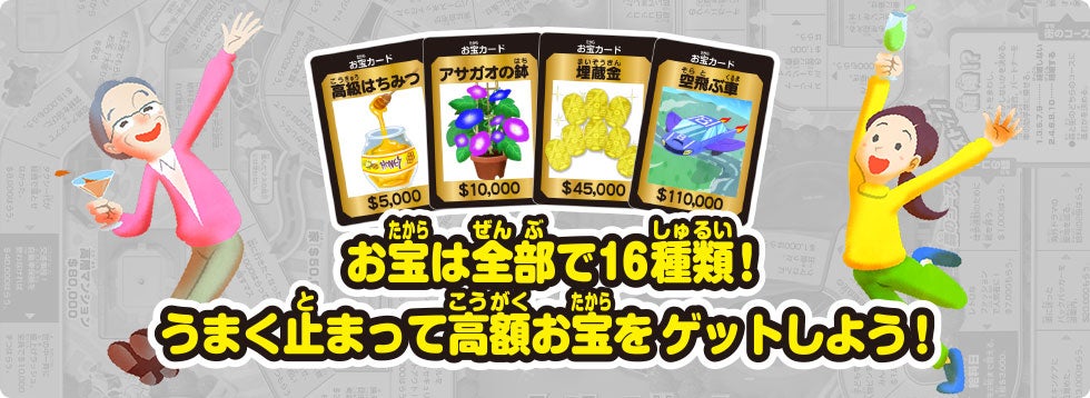 お宝は全部で16種類!うまく止まって高額お宝をゲットしよう!