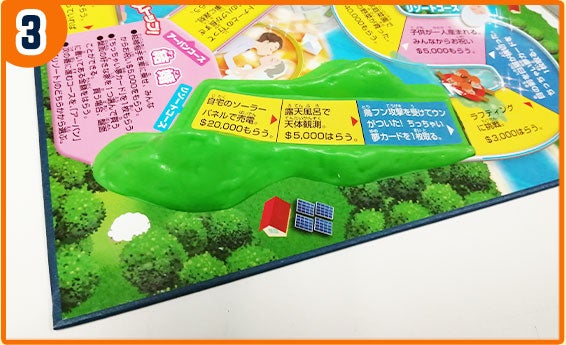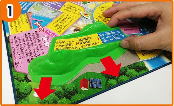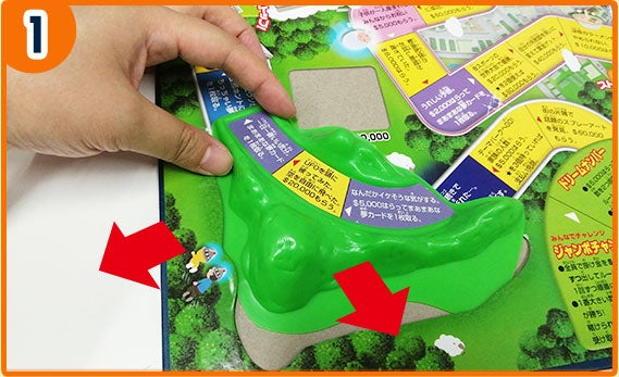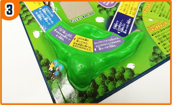 2つの山パーツは、羽根部分をゲーム盤の隙間に差し込むことで取り付けることができます。