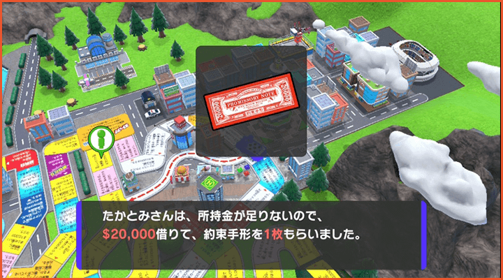支払いが発生したとき、所持金が足りない場合は銀行から借金して支払います。このとき借金$20,000につき1枚、約束手形を受け取ります。