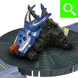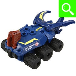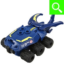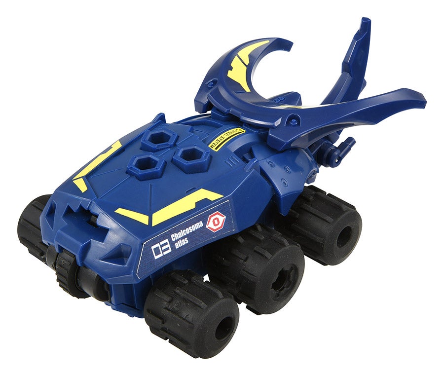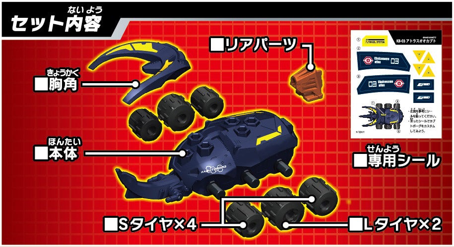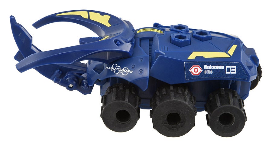 大きな3本の角が特徴のカブトムシ「アトラスオオカブト」がモチーフ。頭角で相手を起こし、2本の胸角で押し倒す攻撃タイプのカブトボーグ。