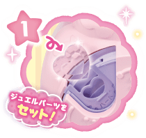 本体上部のクリアケースは開閉できるから、作ったジュエルシールを入れて飾ったり、付属パーツを入れておかたづけボックスとしても使えるよ!